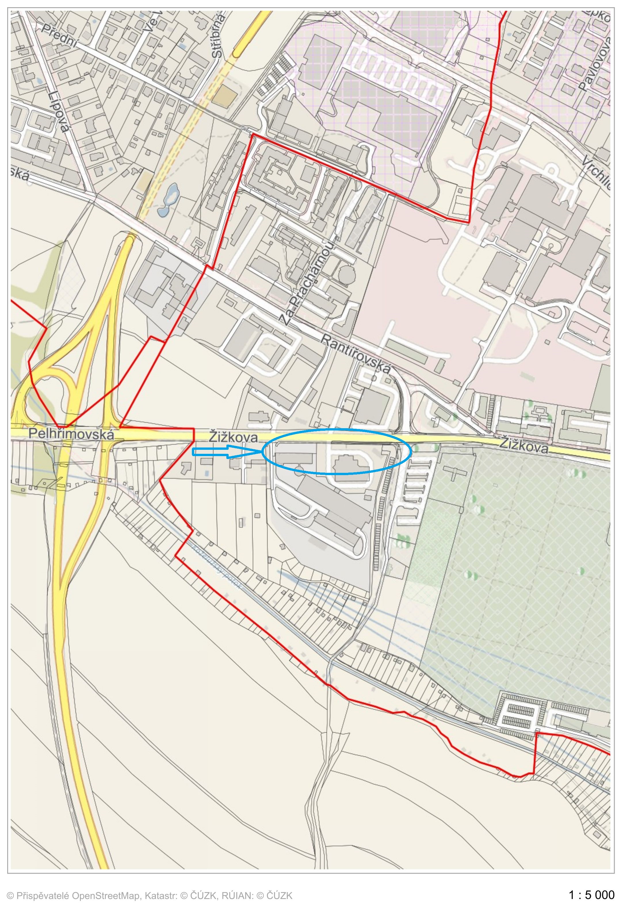 Příloha č.4: 21-11003-p20052 - Snímek s vyznačením vjezdu do areálu společnosti LAPEK, a.s..jpg